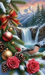 Теги: водопады, горы, деревья, птицы, шары, шишки