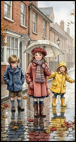 Теги: дети, дома, зонты, лужи