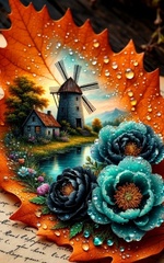 Теги: листья, мельницы, цветы