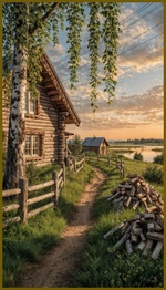 Теги: дома, дрова, закат, тропинки