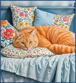 Теги: кошки, кровати, подушки, рыжик