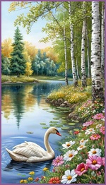Теги: лебеди, лес, озеро, природа, цветы