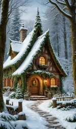 Теги: вечер, домики, ёлочные игрушки, свечи