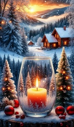 Теги: вечер, деревья, дома, ёлочные игрушки, свечи