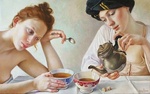 Теги: девочки, кошки, рисунок, скамейки, шляпы