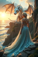 Теги: вечер, девушки, драконы, море, рисунок, скалы, фэнтези