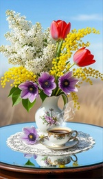 Теги: букеты, вазы, цветы, чашки