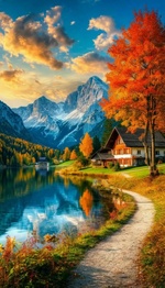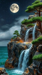 Теги: вода, дерево, домики, зима, ночь, отражение