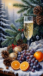 Теги: бокалы, ёлки, фрукты, шары, шишки