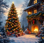 Теги: вечер, дома, ёлки, камины, Новый год, подарки