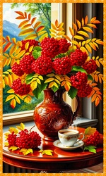 Теги: букеты, кувшины, рябина, столы, чашки