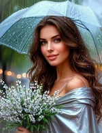 Теги: брюнетки, букеты, девушки, зонты, цветы