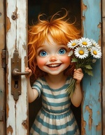 Теги: девочки, дети, рисунок, ромашки, рыжие, цветы, эмоции