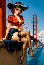 Теги: девушки, мосты, рисунок, шляпы