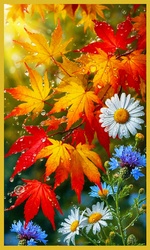 Теги: васильки, листья, ромашки, цветы