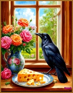 Теги: вазы, вороны, окна, сыр, Тамара Б, цветы