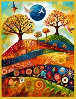 Теги: деревня, птицы, рисунок, цвета, цветы