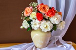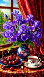 Теги: вазы, вишни, натюрморт, окна, цветы
