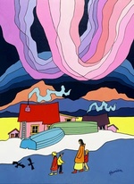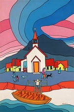 Теги: Ted Harrison, дома, лодки, люди, Север