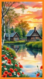 Теги: дома, закат, природа, реки, цветы