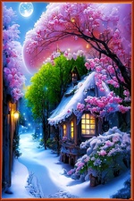 Теги: деревья, дома, зима, цветы