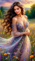 Теги: девушки, полевые, цветы