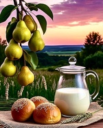 Теги: выпечка, груши, молоко, натюрморт