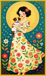 Теги: девушки, рисунок, собаки, цветы