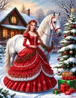 Теги: девушки, дома, ёлки, зима, лошади
