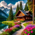 Теги: горы, деревья, дома, реки, цветы