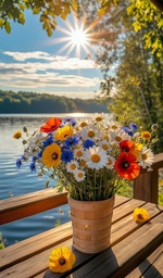 Теги: букеты, деревья, озеро, утро, цветы