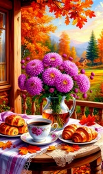 Теги: детский, ежи, осень, рисунок, чаепитие