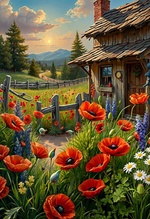 Теги: домики, заборы, тропинки, цветы