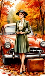 Теги: автомобили, девушки, деревья, осень, рисунок
