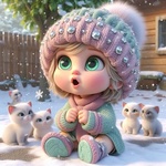 Теги: девочки, детский, зима, котята, рисунок, шапки