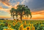 Теги: деревья, закат, подсолнухи
