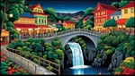 Теги: Garicten, водопады, дома, мосты