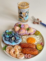 Теги: еда, завтрак, креветки, сосиски, ягоды, яичница