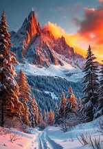 Теги: горы, деревья, закат, зима