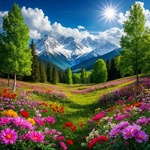 Теги: горы, деревья, полевые цветы, природа, рисунок