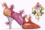 Теги: Evandro Schiavone, живопись, растения, сюрреализм, туфелька, ягоды