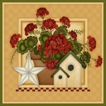 Теги: Angela Anderson, герань, коллаж, скворечники, цветы