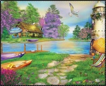 Теги: Caplyn Dor, дома, мостик, озеро, пляж, цветы