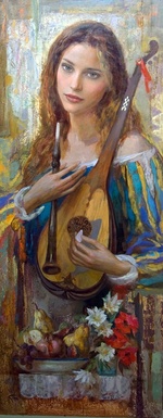 Теги: Goyo Dominguez, женщины, живопись, музыкальные инструменты, фрукты, цветы