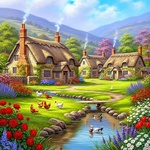 Теги: домики, кошки, тропинки, цветы