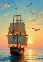 Теги: закат, корабли, море, парусники