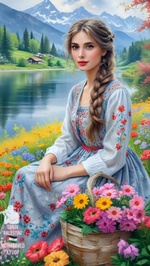 Теги: горы, девушки, дома, корзины, реки, цветы